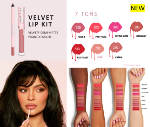 • Velvet liquid lipstick**: carrega pós de toque suave para um acabamento aveludado.