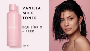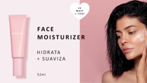 • Apresenta uma tampa rosa claro e um frasco transparente, com as gotas icônicas e o logotipo de Kylie em rosa claro.